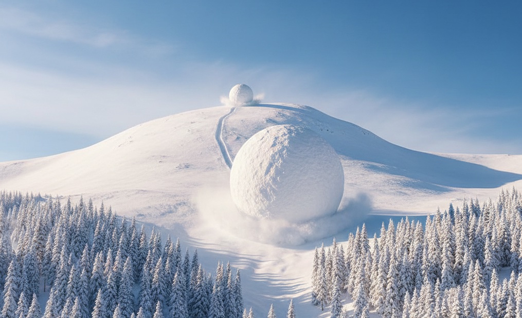È come una palla di neve che rotola giù da una montagna: all’inizio è piccola, ma più rotola, più diventa grande, e cresce sempre più velocemente!