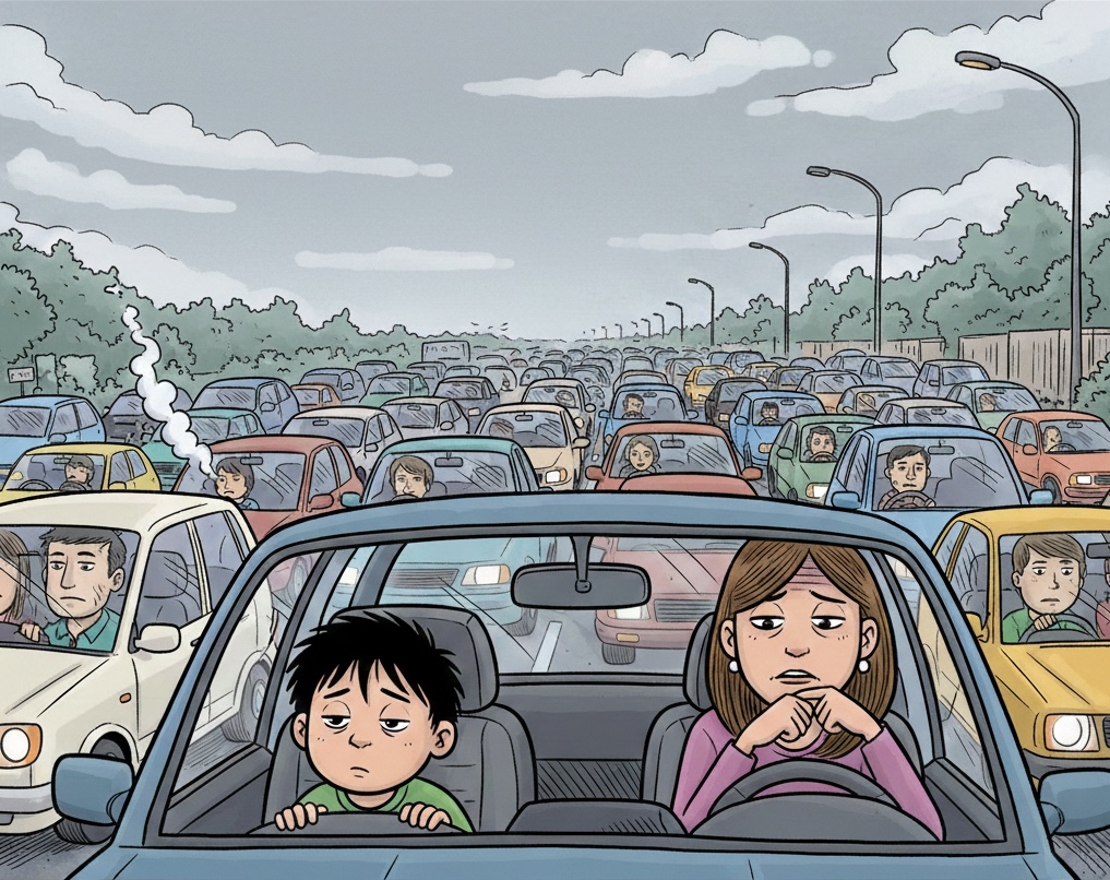 Io guardavo quell’infinito serpentone di auto e pensavo: siamo davvero convinti che questa corsa quotidiana sia normale? Che sia sana?
