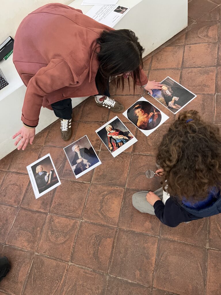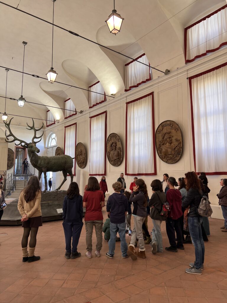 Ad accompagnarci Silvia, la nostra guida, che ha trasformato la visita in una vera e propria caccia al tesoro. I nostri ragazzi si sono improvvisati “piccoli detective”, chiamati a rispondere a domande, notare dettagli e collegare indizi lungo il percorso. Non è stato necessario “convincerli” a prestare attenzione: sono abituati a frequentare musei e ad ascoltare con interesse, ma questa modalità ha reso tutto ancora più dinamico e partecipato, permettendo loro di entrare nella storia con uno sguardo attivo e curioso.